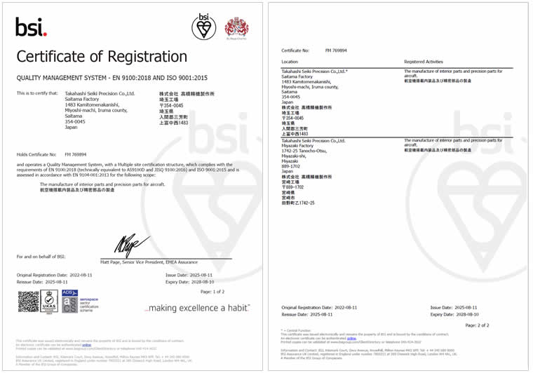 航空機輸送産業の信頼と安全性を高める為の品質管理に重点を置き、常に最新の技術力を追い求める。